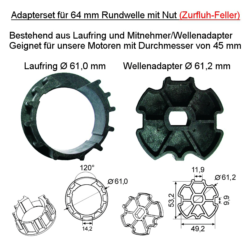 IM-AR64ZF Adapterset für 64mm Zurfluh-Feller Rundwelle