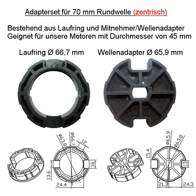 IM-AR70Z Adapterset für 70mm Rundwelle zentrisch