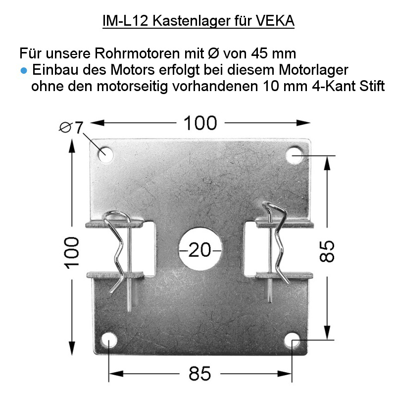 IM-L12 Kastenlager 100x100 mm (Bohr.85x85) für VEKA Aufsatzkästen VEKAVARIANT